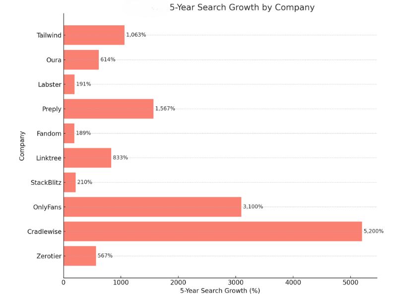 | Company | 5-Year Search Growth | Year Founded |
